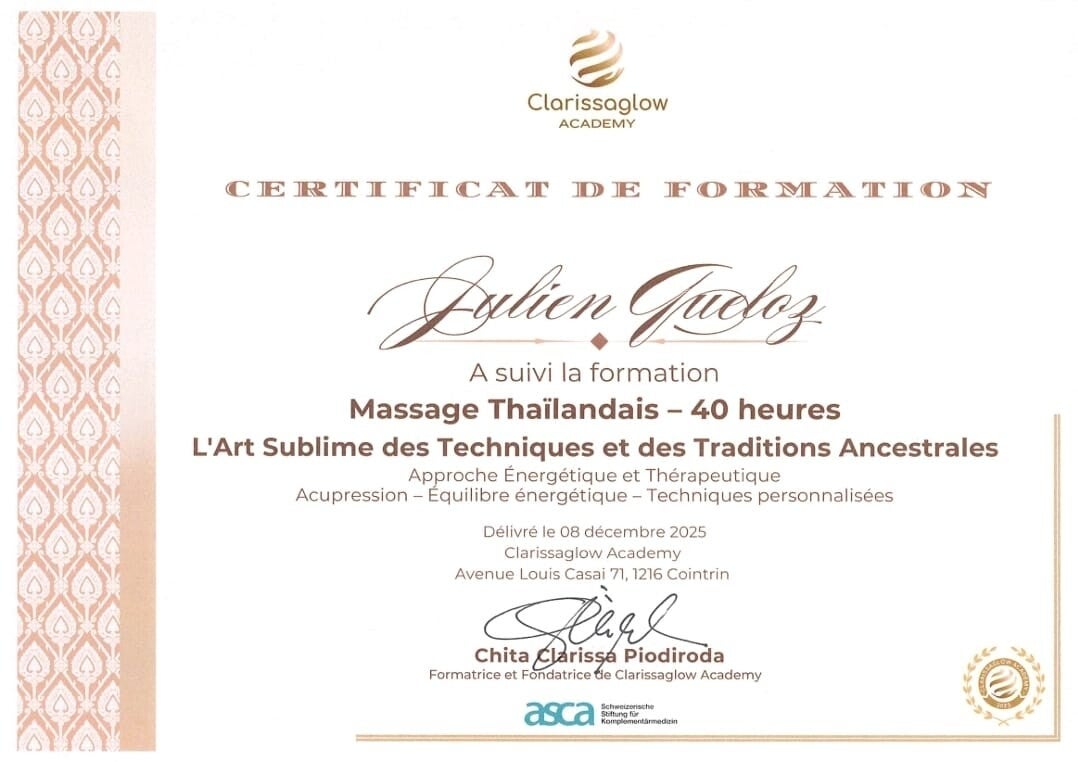 Découvrez l'histoire et la passion derrière Julien Queloz Massothérapeute. Mon engagement : améliorer votre bien-être grâce à des massages personnalisés et une écoute attentive. Bienvenue dans mon univers dédié à votre détente et votre santé.